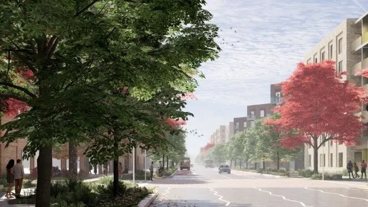 A public square and sweeping crescent mark the entrance into the neighbourhood, while the mix of homes, ranging from medium-rise apartment buildings to urban terraces and spacious family houses, is designed to foster a diverse and vibrant community.